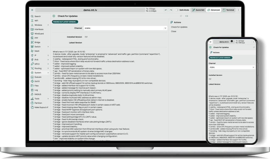 If you are already running RouterOS, upgrading to the latest version can be done by clicking on "Check For Updates" in QuickSet or System > Packages menu in WebFig or WinBox.